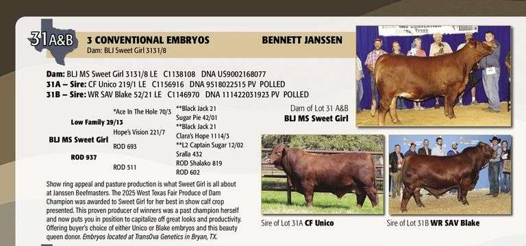 LOT 31A - Embryo Package: CF UNICO x BLJ SWEET GIRL